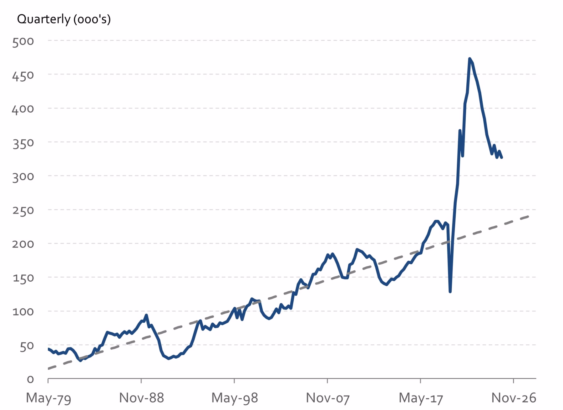 - The market sector recorded a productivity index of 166 in September 2025, implying a 66% increase in productivity or just under 2% annual growth. This highlights a stark contrast between private business productivity, which mostly operate in competitive markets, and the public sector, where funding is mostly by governments.